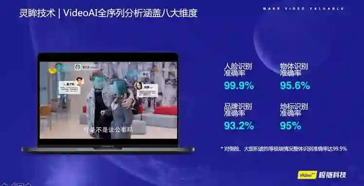 通过自研的Video AI核心产品,极链科技现已解析了自2012以来的视频信息,并将其从场景、物体、人脸、品牌、表情、动作、地标、视觉特征检索等8大维度进行数据结构化,同步生成轨迹流数据,通过复合推荐算法将元素信息升级为情景信息,直接赋能各种商业化场景。