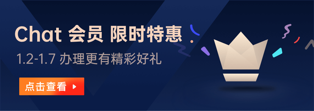 2020 年 1 月 2 日 - 2020 年 1 月 7 日,开通 Chat 会员立享优惠。除此之外,现在成为会员,还有机会抽取会员专属限量版新年礼!