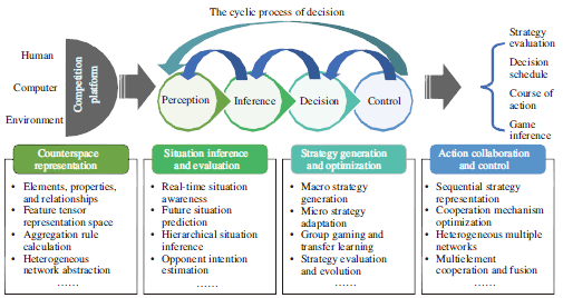 人机对抗作为人工智能研究的前沿方向, 已成为国内外智能领域研究的热点, 并为探寻机器智能内在生长机制和关键技术验证提供有效试验环境和途径. 本文针对巨复杂、高动态、不确定的强对抗环境对智能认知和决策带来的巨大挑战, 分析了人机对抗智能技术研究现状, 梳理了其内涵和机理, 提出了以博弈学习为核心的人机对抗智能理论研究框架; 并在此基础上论述了其关键模型: 对抗空间表示与建模、态势评估与推理、策略生成与优化、行动协同与控制; 为复杂认知与决策问题的可建模、可计算、可解释求解奠定了基础. 最后, 本文总结了当前应用现状并对未来发展方向进行了展望。
