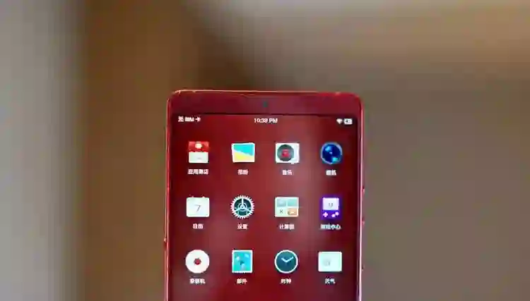 在白色和红色面板的坚果 Pro 2 上,只能在「额头」中间看到一颗前置摄像头,听筒、光线传感器、距离传感器全部都做了隐藏处理。