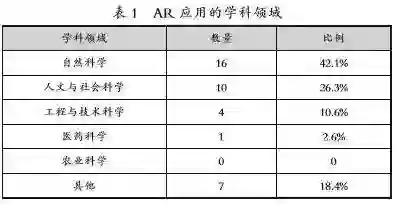 最后,在文献中仅发现1篇关于AR在“医药科学”领域教学应用的研究(2.6%),没有发现AR在“农业科学”领域教学应用的研究。因此,未来我们可以更多地关注如何将AR技术应用于医药科学与农业科学方面的研究。