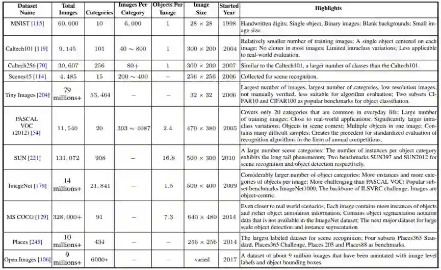 但是在 2012 年,Krizhevsky et al. [109] 提出的深度卷积神经网络(DCNN)AlexNet 在大规模视觉识别挑战赛(ILSRVC)[179] 上实现了创纪录的图像分类准确度。自那以后,许多计算机视觉应用领域都将研究重心放在了深度学习方法上。在一般目标检测领域涌现出了很多基于深度学习的方法 [65, 77, 64, 183, 176],也取得了很大的研究进展,然而我们仍还没有对过去五年一般目标检测主题的全面总结。本论文聚焦于这段快速发展的时间,特别重点关注了基于深度学习的一般目标检测,以呈现出更明晰的一般目标检测全景。
