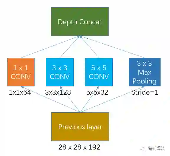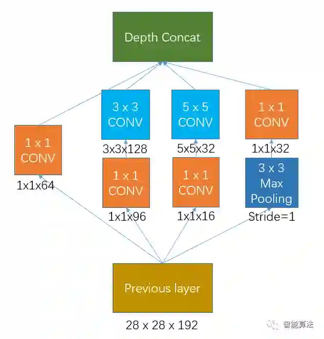 28 x 28 x 64 + 28 x 28 x 128 + 28 x 28 x 32 + 28 x 28 x 192 = 28 x 28 x 416