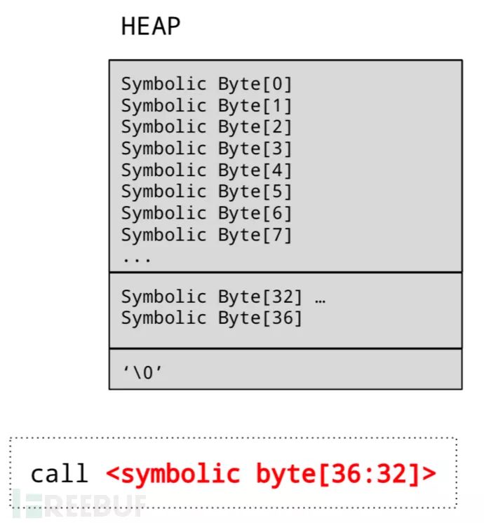 当 EIP 完全被符号变量覆盖时,代表控制流已被劫持,此时堆及 EIP 状态如下: