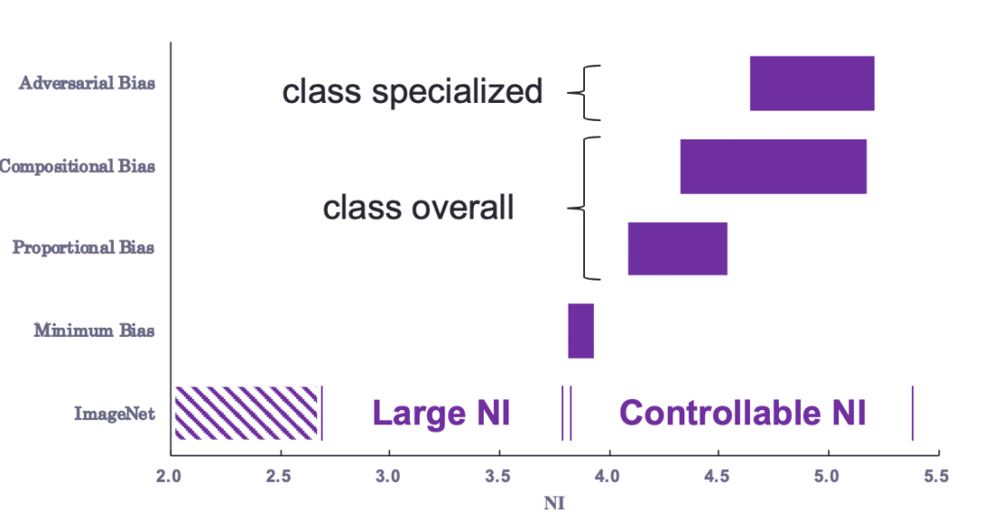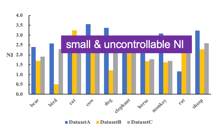 虽然NI的区间变化很大,利用NICO就能很容易地创建这些经典的Non-I.I.D.场景,然后进行多样的科学研究。假设测试环境的信息已知,你可以做迁移学习、域适应性学习等研究;如果测试环境的信息不知,也可以进行稳定机器学习等方面的研究。