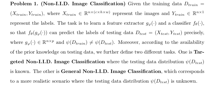 区别于I.I.D.下传统图像任务的定义,Non-I.I.D.把“跨数据集泛化性”作为主要的评价标准。以基本的图像分类任务为例,Non-I.I.D.下的图像分类分为Targeted类和General类。两类任务的区别在于是否已知测试环境的信息,目标都是从训练环境中学习可以泛化到有数据分布偏差的测试环境的模型。显然,随着不同类型、任务、规模的数据集不断提出,单单通过排列组合来考察“跨数据集泛化性”带来的边际效应越来越低,从实际研究的⻆度出发,整个研究社区亟需⼀个可以系统、定量地研究数据分布偏差与模型泛化性能的标杆数据集。
