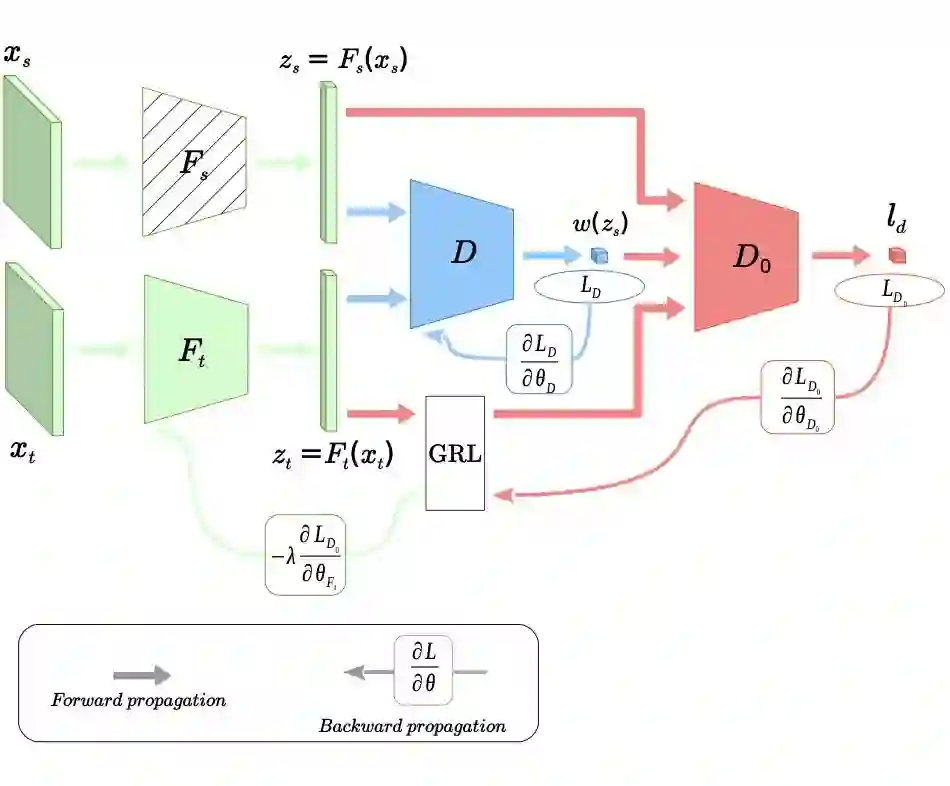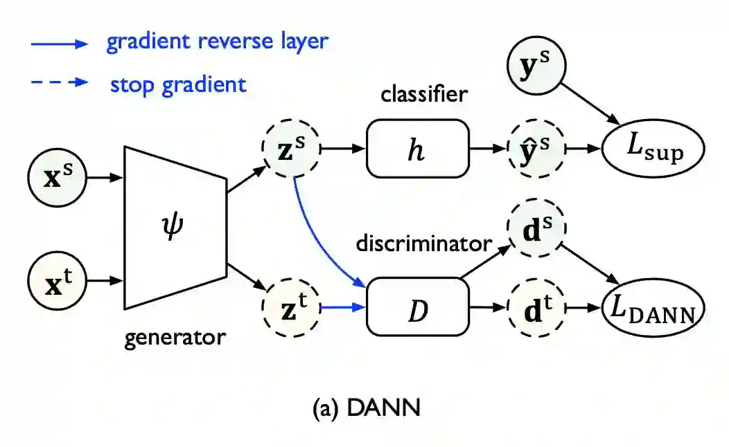 这些在迁移学习文献综述 Transferability in Deep Learning: A Survey 中进行了详细介绍,后续也会为这些方法推出相关的介绍文章。 对抗域自适算法的理论基础可以参考姐妹篇文章迁移学习:域自适应理论简介 Domain Adaptation Theory。 本文力求用通俗的语言介绍对抗域自适应方法最重要的几个算法的设计以及它们的改进。因此,不了解域自适应理论不影响阅读本文。