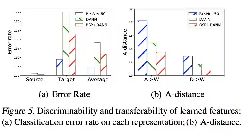 相比于统计距离(比如 DAN [7],JAN 等),基于域判别器学习得到的距离需要更多的数据(不论是源域还是目标域)。因此在数据量相对较少的场景下,反而是基于统计距离的域自适应方法效果更好。强调相对的原因是,数据量相对的多少不仅取决于总的数据量,还取决于类别数,比如 DomainNet 数据量虽然大,但是类别数也多,导致在 DomainNet 上反而是 DAN 比 DANN 效果更好。