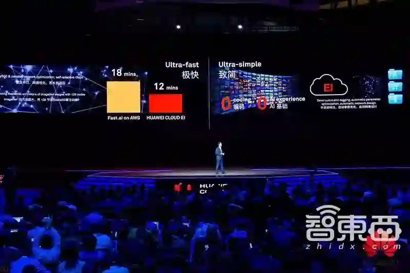在全栈AI解决方案的配合下,华为云EI能够将ImageNet百万级图片用128节点Resnet50算法训练的时间压缩到12分钟——在此之前,行业内最好成绩由fast.AI在亚马逊云上以128片GPU同时运行取得,需要18分钟。