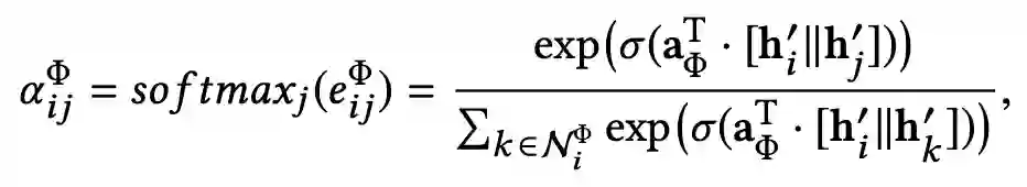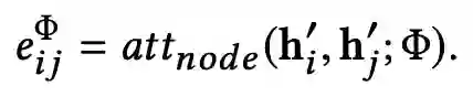 分别是投影前后的节点特征。这里基于自注意力机制(self-attention)设计了节点级别注意力。具体来说,节点级别注意力将节点对的表示拼接起来并利用注意力向量来学习节点与其邻居间的重要性。