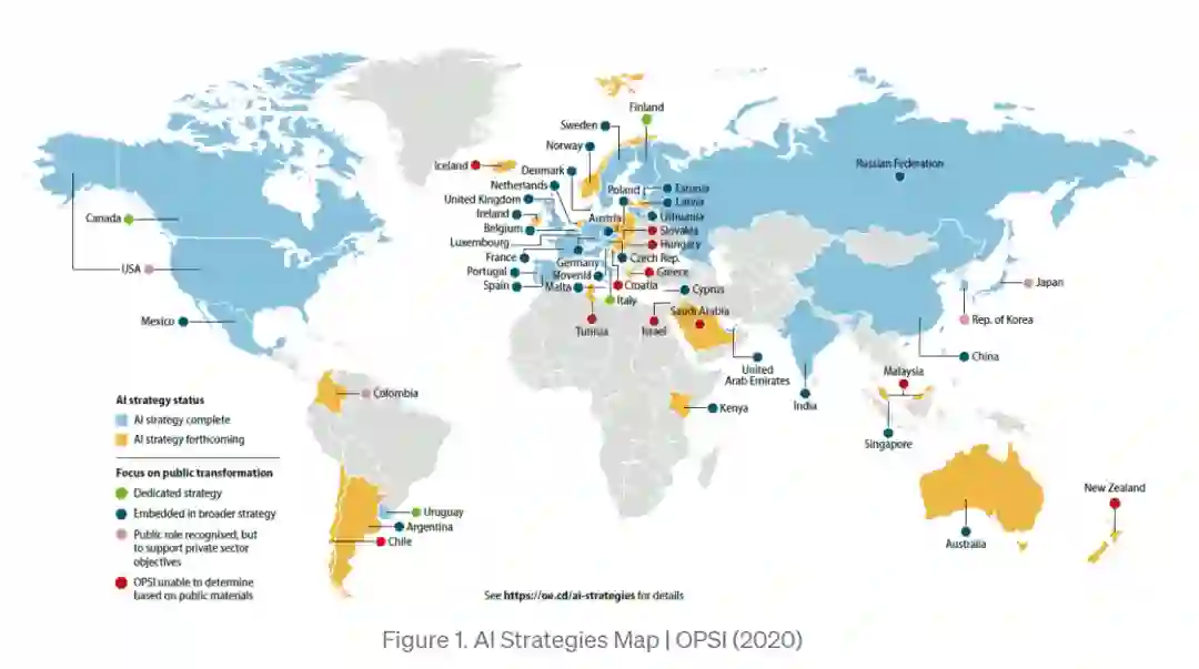 目前,几乎全球主要国家都制定了自己的 AI 战略。