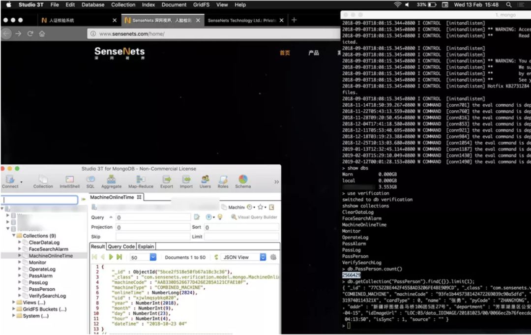 根据Victor Gevers发布的内容得知,此次事件涉及到深网视界的一个MongoDB数据库。该数据库体积超过3.5G,涉及公民信息超过250万条。