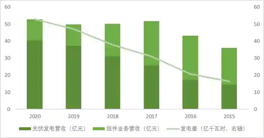 太阳能是中国节能环保集团旗下的子公司,2015年借壳上市,是一家老牌的集中式光伏电站运营企业,兼营部分光伏组件业务。2018-202H1,太阳能集中式光伏电站运营业务对应的营业收入分别为31.09、37.21、40.56和22.04亿元,呈现稳步增长的趋势。