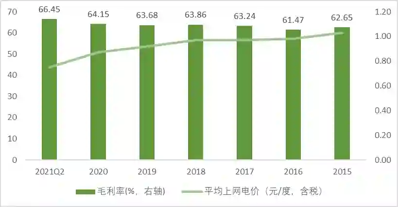 从太阳能自身的毛利率变动情况来看,尽管国家给予电站的光伏补贴从2011年起不断下降,但太阳能光伏电站业务的毛利率一直维持在60%以上的高水平,并未受到补贴退坡的影响,这不仅意味着光伏产业链上游完成了产品成本的同步下降,也表明太阳能拥有着优秀的成本管控能力。