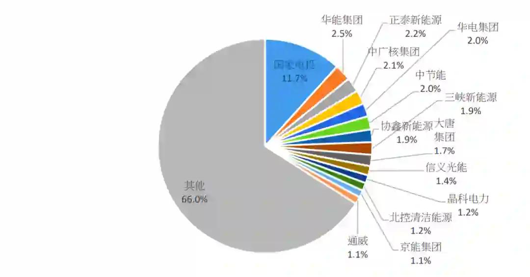 从光伏电站市场份额来看,整个电站运营行业集中度非常分散,像太阳能这一类优质的头部电站运营商市占率也仅有2%左右。