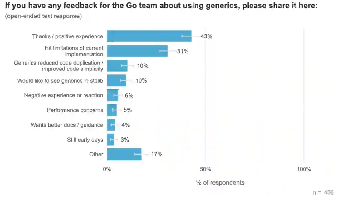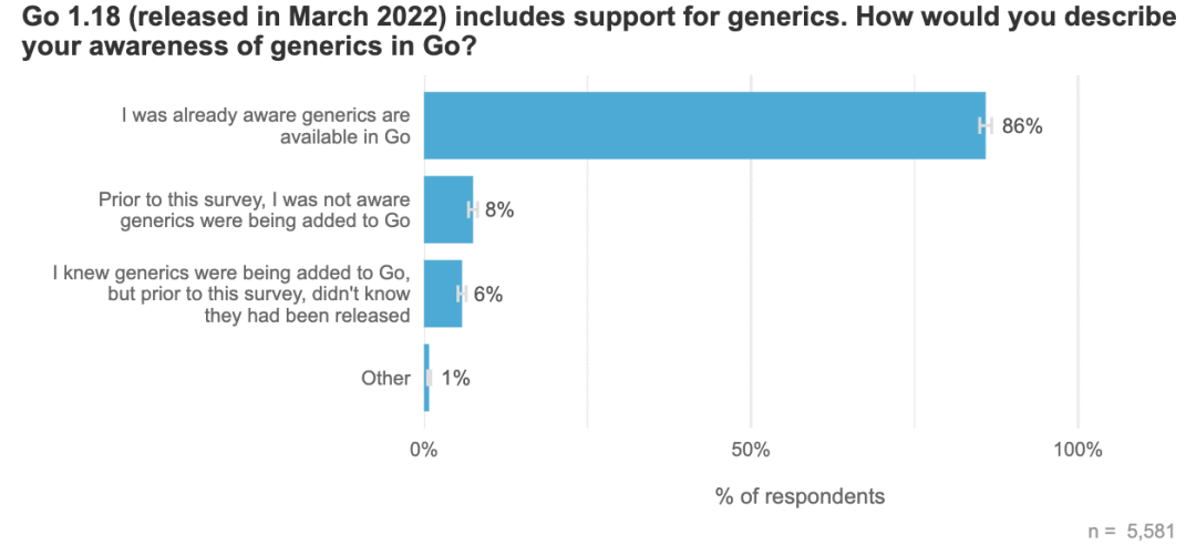 支持类型参数(即泛型)的 Go 1.18 发布之后,我们希望大家如何看待和采用这项新功能,并确定使用泛型时的常见挑战或障碍。