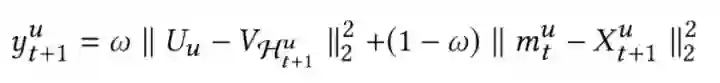 综合短期兴趣和长期兴趣,可得到用户对于某个物品的推荐分,推荐分越低,代表用户和物品越相近,用户越可能与该物品进行交互: