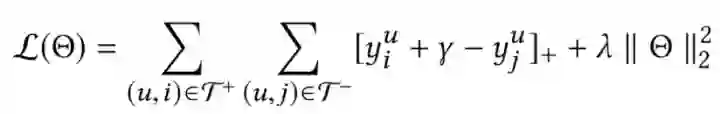 模型采用pair-wise的方法训练,即输入一个正例和一个负例,希望负例的得分至少比正例高γ,否则就发生损失,并在损失函数加入L2正则项:
