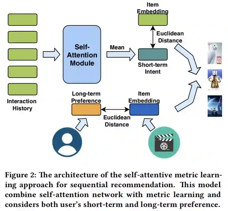本文亮点是同时建模用户短期兴趣(由self-attention结构提取)和用户长期兴趣。