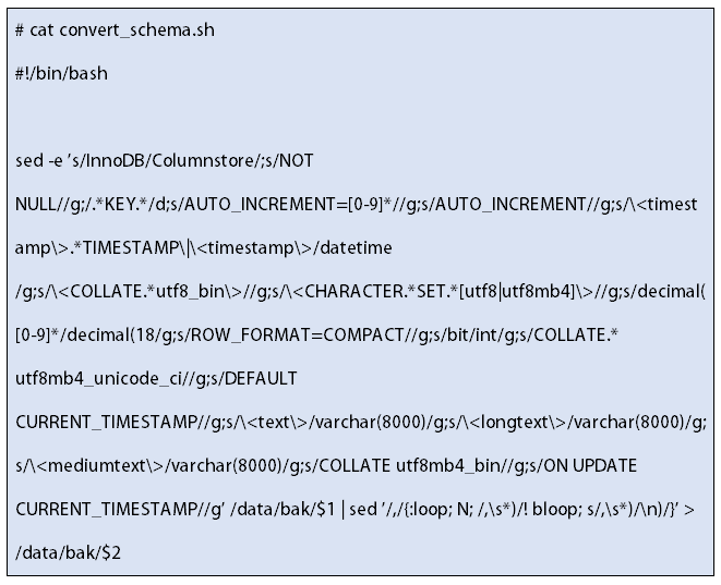 这块可以用sed命令替换一下,改成Columnstore能识别的语法