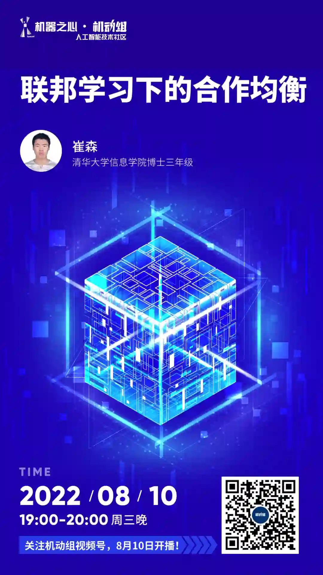 2022 年 8 月 10 日,机器之心最新一期线上分享邀请到了崔森,为大家详细解读联邦学习下的合作均衡。