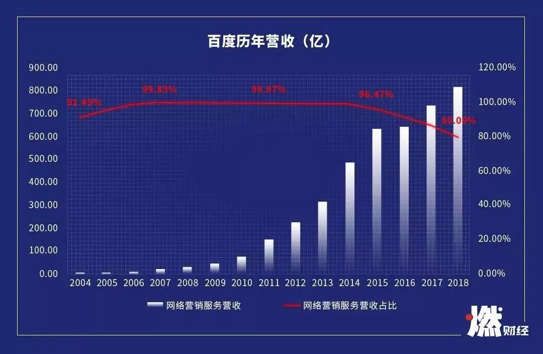 影响直接反映在了财报上,当年,百度的收入增速直降到6%,相比腾讯阿里近50%的增速少得可怜,市值628亿美元,比腾讯阿里低了三个身位,彻底掉队。之前一直为百度带来95%以上营收的竞价排名,还给了百度沉重的打击。