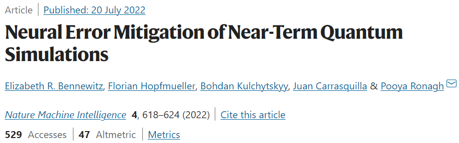 该研究以「Neural Error Mitigation of Near-Term Quantum Simulations」为题,于 2022 年 7 月 20 日发布在《Nature Machine Intelligence》。