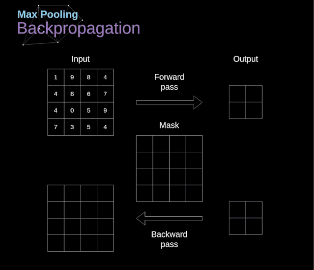 正如我们所记得的,在最大值池化的正向传播中,我们从每个区域中选择最大值,并将它们传输到下一层。