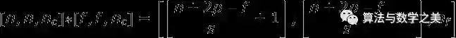 输出矩阵的尺寸——考虑到填充宽度和步幅——可以使用以下公式计算。