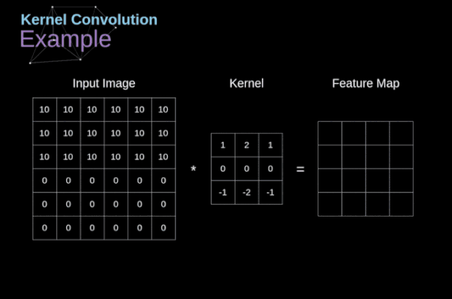 在这个过程中,我们采用一个形状较小的矩阵(称为核或滤波器),我们输入图像,并根据滤波器的值变换图像。