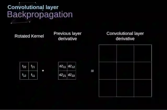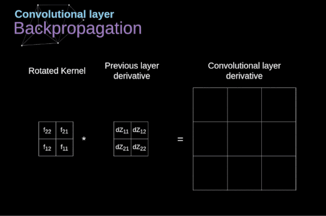 现在,我们需要处理卷积本身的反向传播,为了实现这个目的,我们将使用一个矩阵运算,称为全卷积,如下图所示。