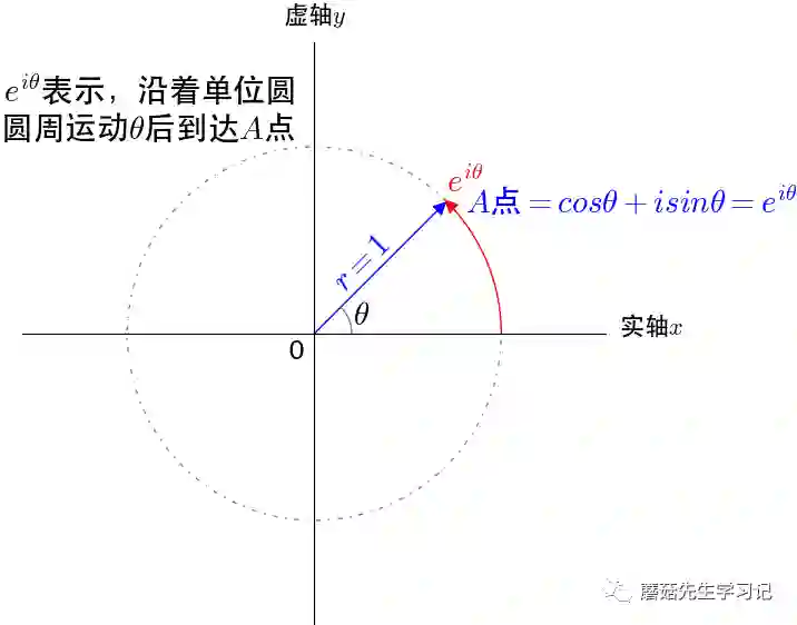 欧拉公式可以根据泰勒展开推出。通常的理解,我们可以把 看做是「单位圆的圆周运动」来「描述单位圆上的点,」 通过「复平面的坐标」来「描述单位圆上的点」,是同一个点不同的描述方式,所以有 .