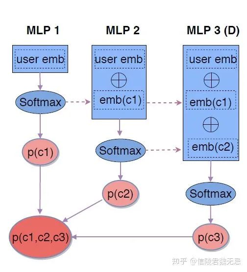 每一层是一个MLP,输出K个概率,表示包含这个节点的概率,假设每个item对应的路径π固定。