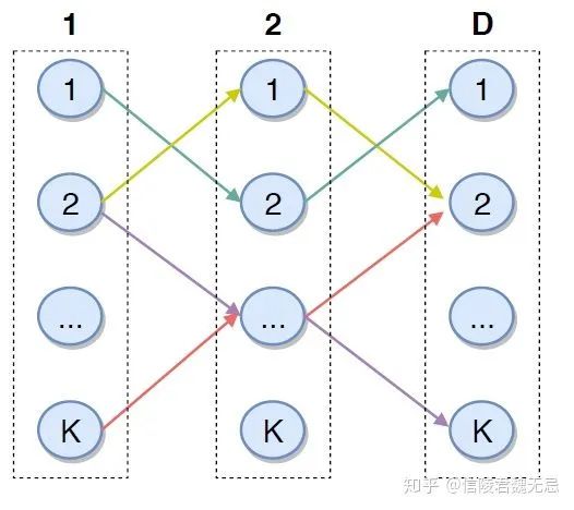 使用一个D x K维的矩阵来作为索引结构。模型预测需要走D步,每一步有K种选择。走到最后会有K^D可能的路径(也可以叫做编码),每一条路径可以代表一个包含多个item的集合,每个item反过来也可以同时在多条路径的集合里面。路径可以看做是一个聚类结果。