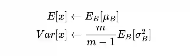 方差发生了改变, 推理 时,均值、方差是 基于所有批次 的期望计算所得,公式如下: