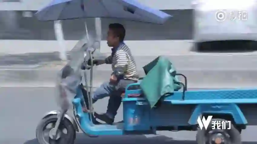 一位年轻妈妈推着婴儿车在雨天等红灯,外卖小哥送餐经过发现后,连忙脱下自己的雨衣盖在婴儿车上方,并一直将母女二人送回了家。