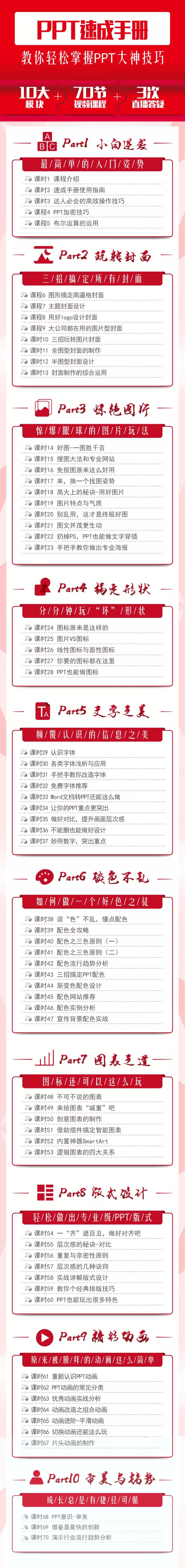10大模块+70节视频课程+3次直播答疑