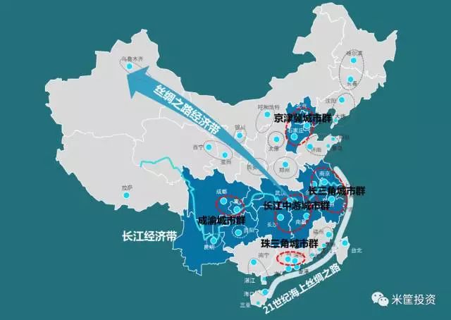 以国家三大战略——“一带一路”、京津冀协同发展、长江经济带——为出发点,这五大城市群是三大战略叠加最明显的地区,也是未来中国最具发展潜力的地区。
