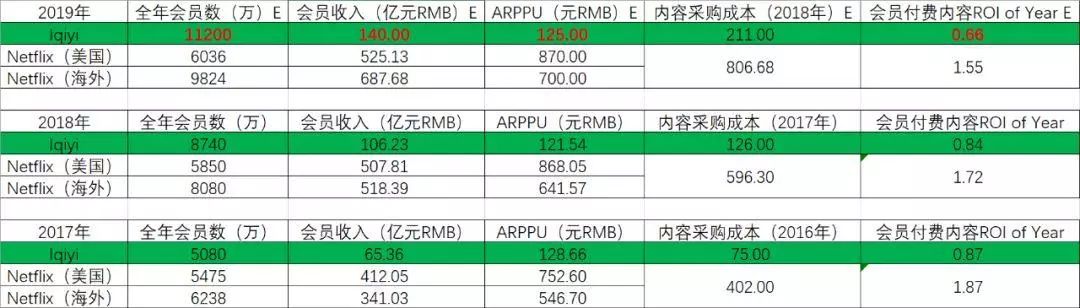 换句话说,原本ROI就只有Netflix一半不到的爱奇艺,2018年投入购买的内容在2019年的产出效率又降低了。