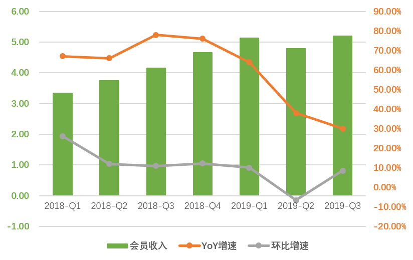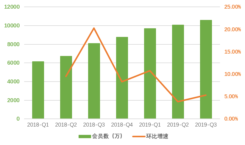 会员的新增逐步进入停滞,会员收入的增速也出现了下滑的趋势