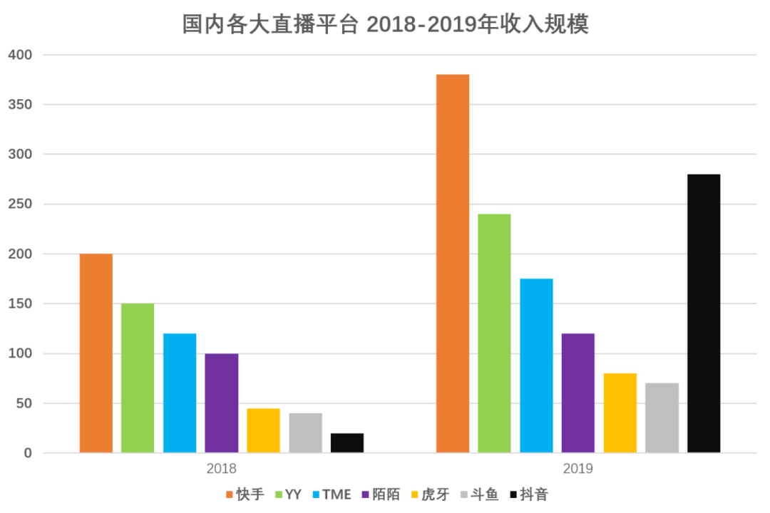 而抖音和快手目前一个月的直播收入,比虎牙和斗鱼一个季度的直播收入还多。