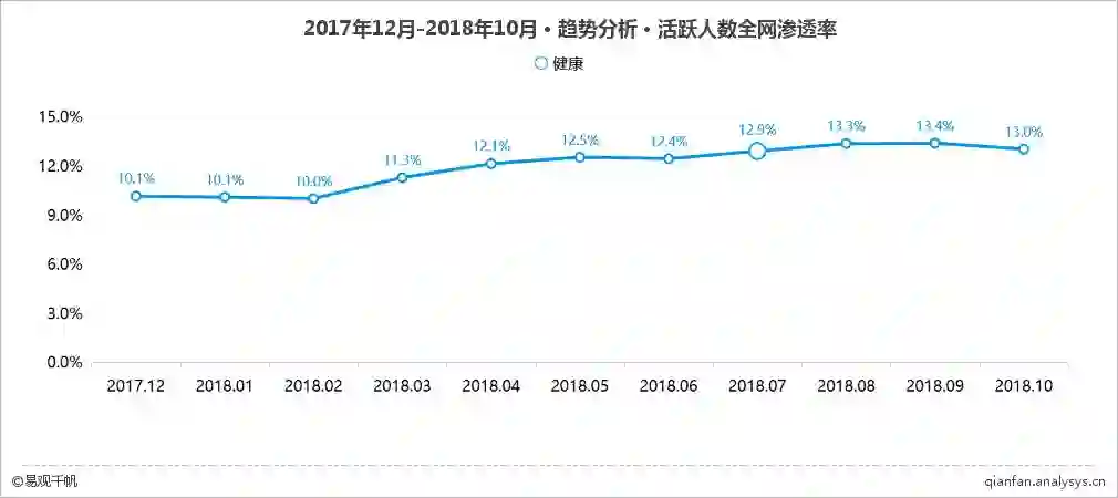 健康领域活跃人数全网渗透率趋势分析