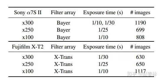 数据采集时,相机固定在三脚架上。我们用无反光镜相机来避免由于镜面拍打引起的振动。在每个场景中,相机设置 (如光圈,ISO,焦距和焦距) 进行了调整,以最大限度地提高参考图像(长曝光时间)的质量。此外,利用远程的智能手机 app 将曝光时间缩短一倍缩小后的曝光时间为100至300。该相机专门用于参考图像 (长曝光时间) 的拍摄,而没有触及短曝光的图像。我们收集了一系列短曝光的图像用于方法的比较和评估,以突出我们方法的优势。