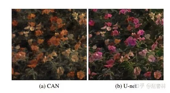 主体的网络结构选择了CAN(快速图像处理的多尺度上下文聚合网络)和U-NET,后续有对比这两种主题网络结构的区别。