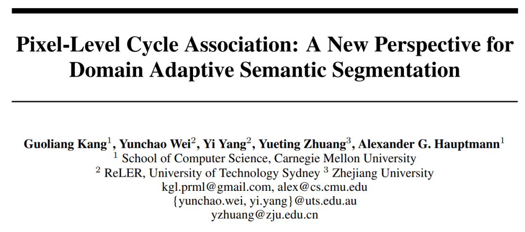 论文题目:Pixel-Level Cycle Association: A New Perspective for Domain Adaptive Semantic Segmentation