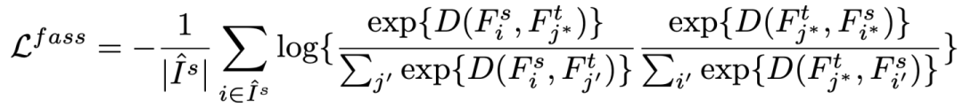 对于建立起关联的像素,我们 contrastively 增强他们之间 (S1--> T 和 T--> S2) 的联系。我们通过 minimize 如下 loss 来实现这一目的 ( 对应于 S1,