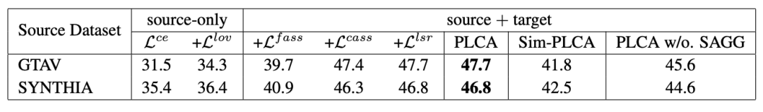 其中,"Sim-PLCA" 指的是直接增强关联像素对相似度的方式,”PLCA w/o. SAGG" 指的是不采用 spatial aggregation 建立关联。