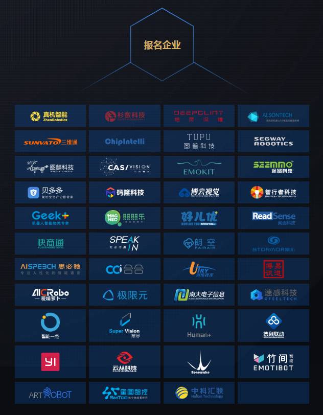 图麟科技、埃尔森智能、理财魔方、纳恩博、鼎界科技、小i机器人 、智能一点、杉数科技、极智嘉科技、海妖情感计算引擎、央数文化、爱啃萝卜、宁波盈芯、远形时空 、极限元、元趣、图普科技、小蚁科技、阅面科技、格灵深瞳、智行者科技、云从科技、班墨、朗空、势必可赢、真机智能、梅卡曼德机器人、速感科技、北醒、贝多多、飔拓、知麻机器人、码隆科技、快商通、三维通、中科汇联、深瞐科技、钢铁侠科技、合合信息、极链、启英泰伦、思必驰、博云视觉、易道博识、人加、南大电子、星图无人机,康夫子、思岚科技、咪鼠科技、地平线机器人技术、乐聚机器人、肽积木科技、声智科技、众安科技、李群机器人、UFACTORY、云知声、钛米机器人、e成科技、欢创科技、再惠、助理来也、小鱼在家、勇艺达机器人、库柏特、博创联动、远传技术、中科慧远、健安华夏