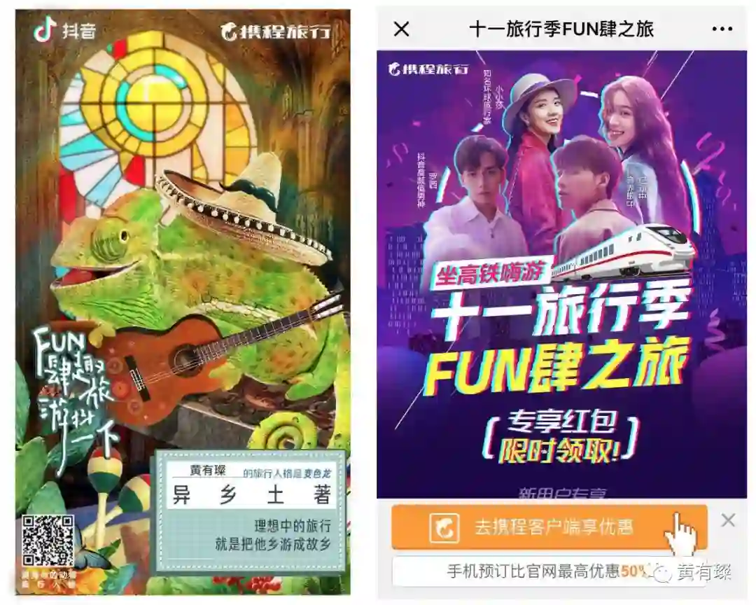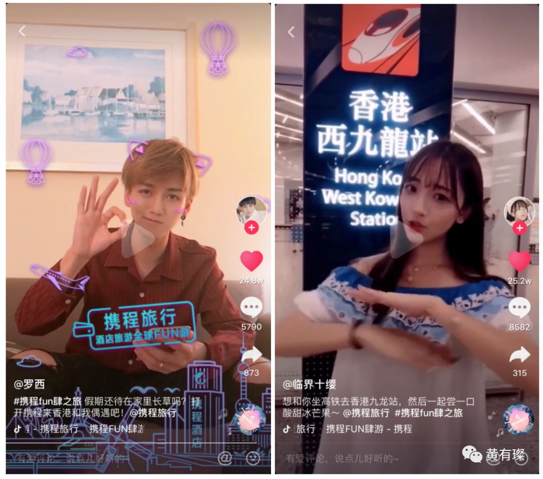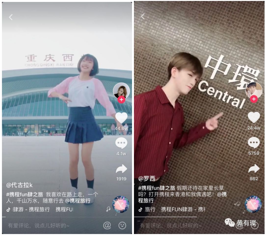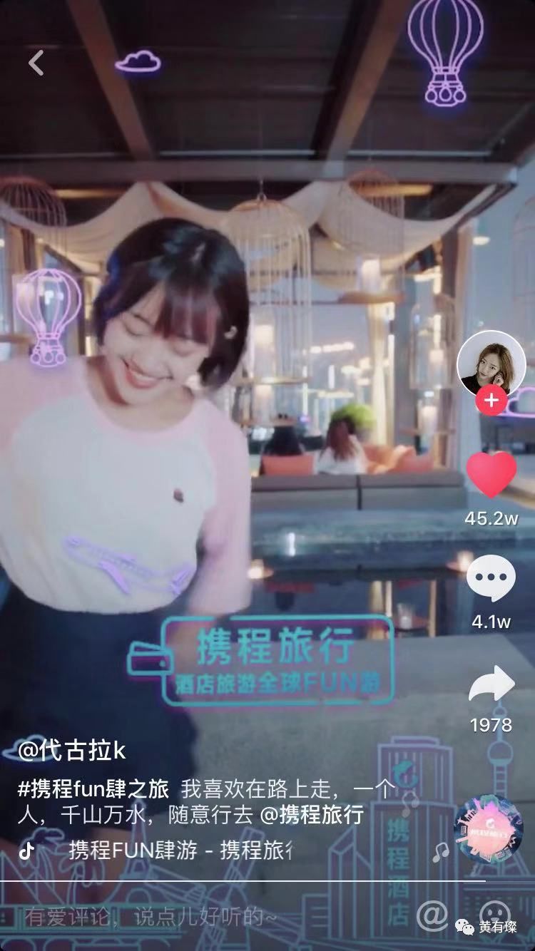 2、#携程fun肆之旅#话题挑战赛:让抖音头部达人分享自己的旅行故事,引发用户共鸣,调动用户记录旅行的UGC内容来参与活动。