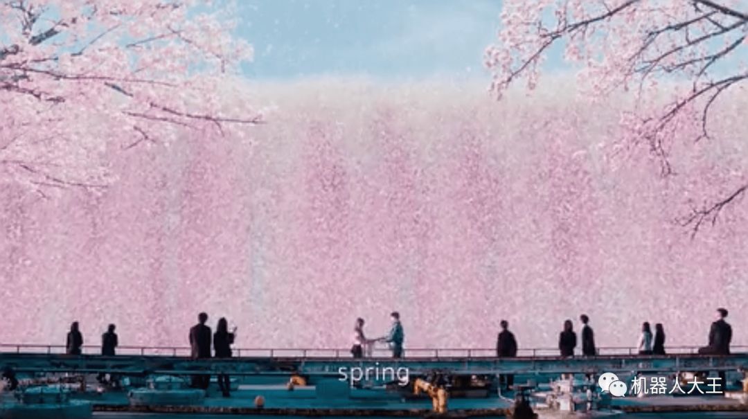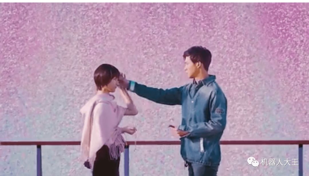 在这部以技术奇点为主题的广告片中,依着樱花、焰火、红叶、雪景等漂亮的背景,她扮演了一位2045年的机器人SAKURA,与一位孤独的工程师HARU相恋。